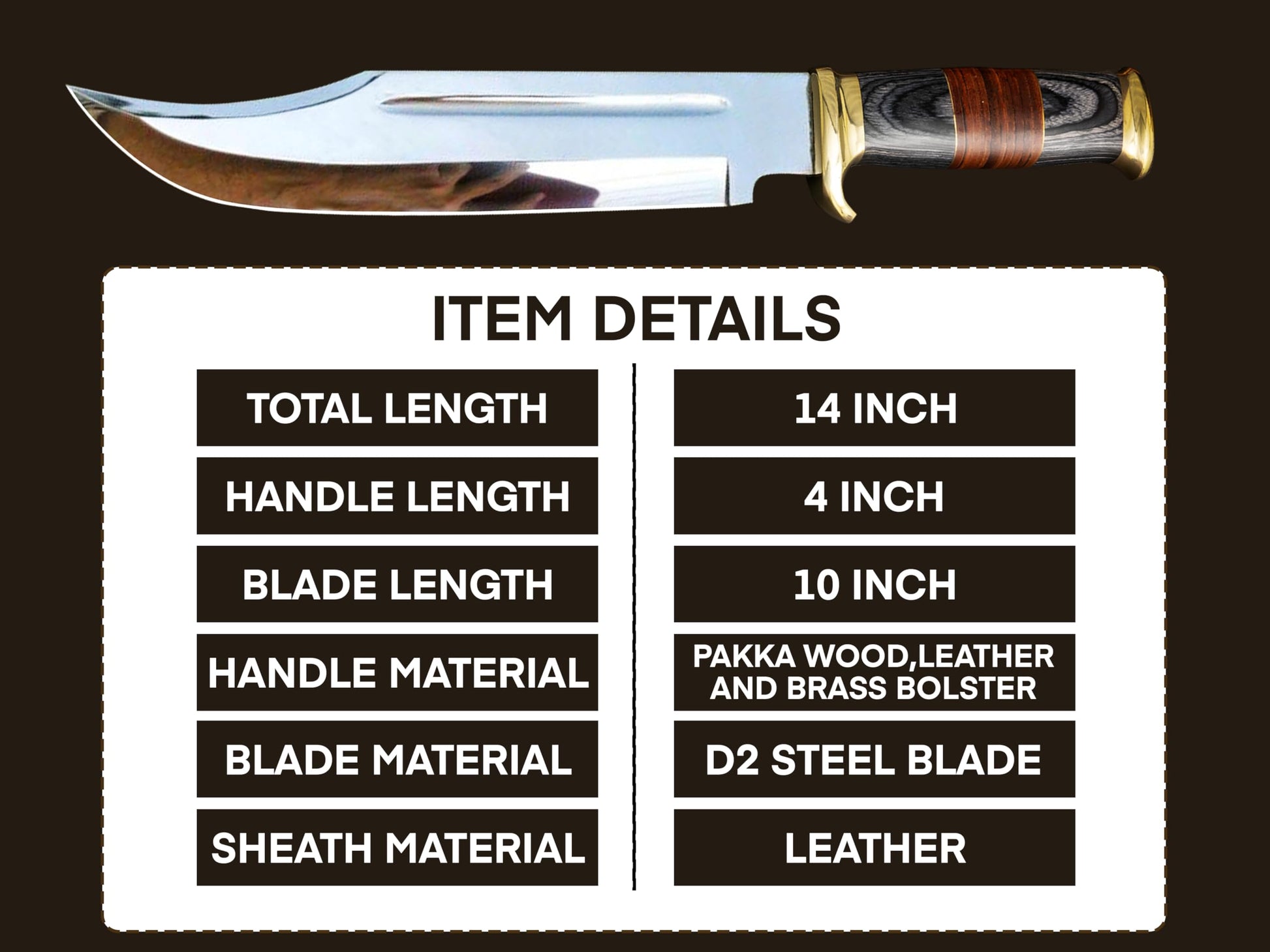 - ✅ Resin & Leather Handle with Brass: The classic handle of a custom handmade Bowie knife provides high friction and a comfortable non-slip grip for use. It is a durable, heavy-duty tactical knife.