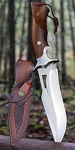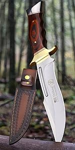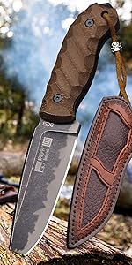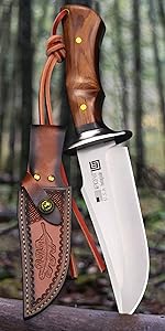 WPKOPYA (USA 440C steel 10.5-inch hunting straight knife + leather sheath,sui...