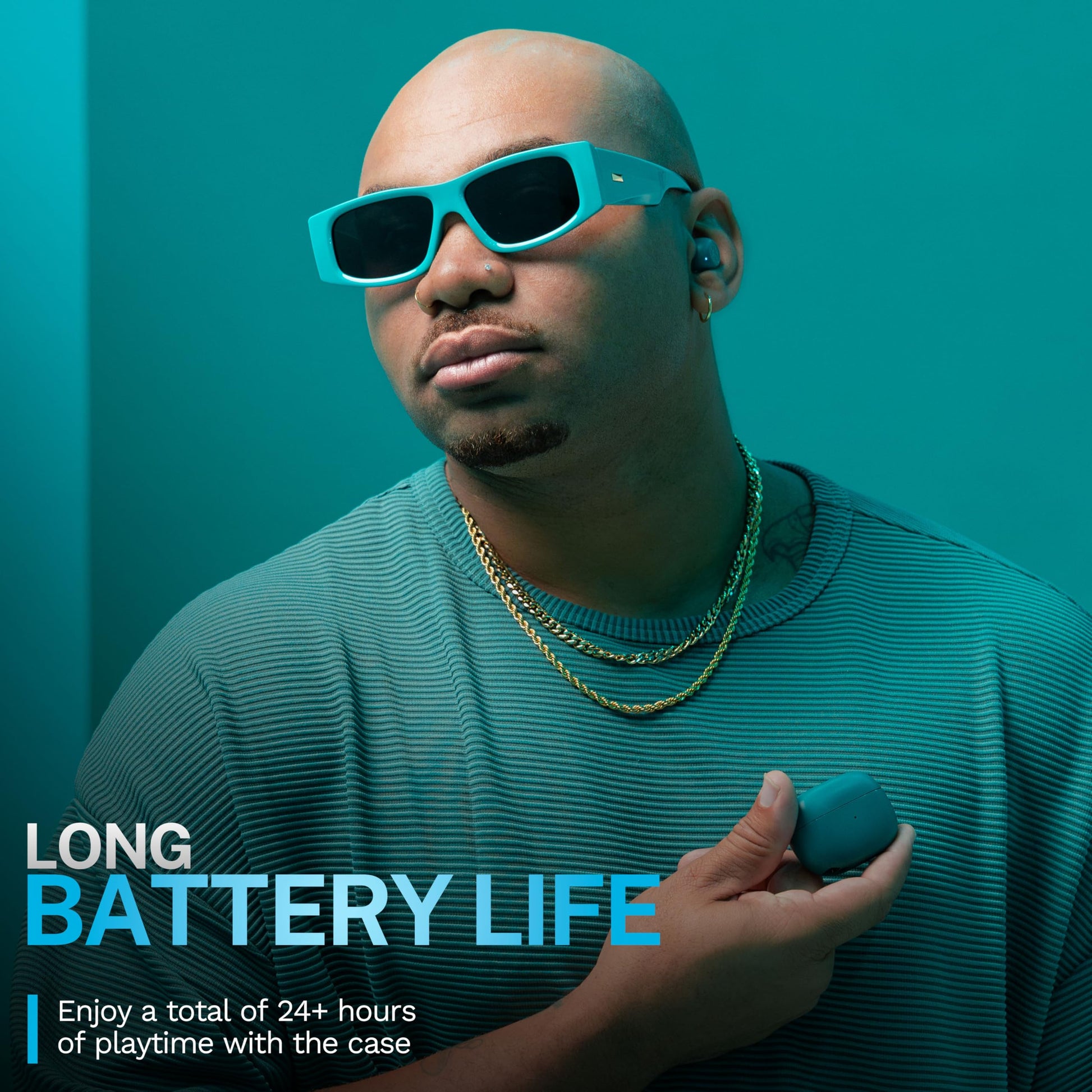 - Long Battery Life: Enjoy up to 7+ hours of playtime on a single charge for each earbud, and a total of 24+ hours of playtime with the case. Plus, conveniently recharge the case with its integrated USB-C charging cable, allowing you to get an hour of playtime with just 10 minutes of charging.