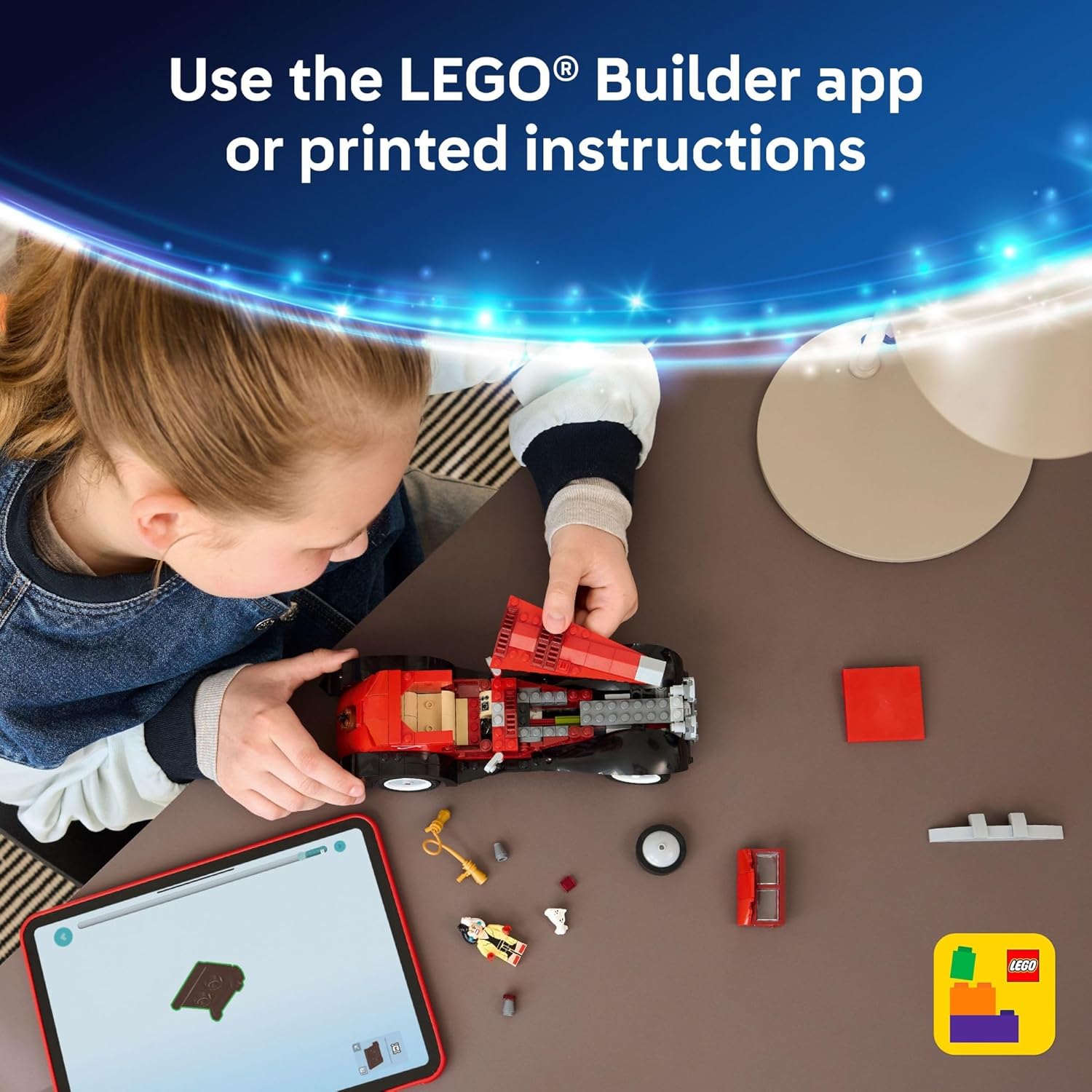 Young Disney fans can put the pedal to the metal with the LEGO Disney Cruella De Vil's Car (43277) model building kit for kids 9 years old and up. Kids can build the iconic villain's vehicle from Disney's hit movie 101 Dalmatians, complete with authentic details like opening doors, a removable roof and steering via the 'spare wheel' at the back to help bring their favorite pretend-play chase scenes to life. Once the model car is built, kids can place Cruella in the driver's seat, add her LEGO puppy companion, and dream up high-speed pretend adventures where the stylish villain does her best to escape justice. Perfect for play and as playroom decor, the fully-constructed model car is a fun addition to playdates and works with other LEGO Disney building sets (sold separately) for expanded storytelling possibilities. Makes an ideal birthday or special occasion present for boys and girls who love Disney movies and car toys. For an easy and intuitive building experience, parents can help kids access the LEGO Builder app, where they can zoom in and rotate models in 3D, save their sets and track their progress. Contains 378 pieces.