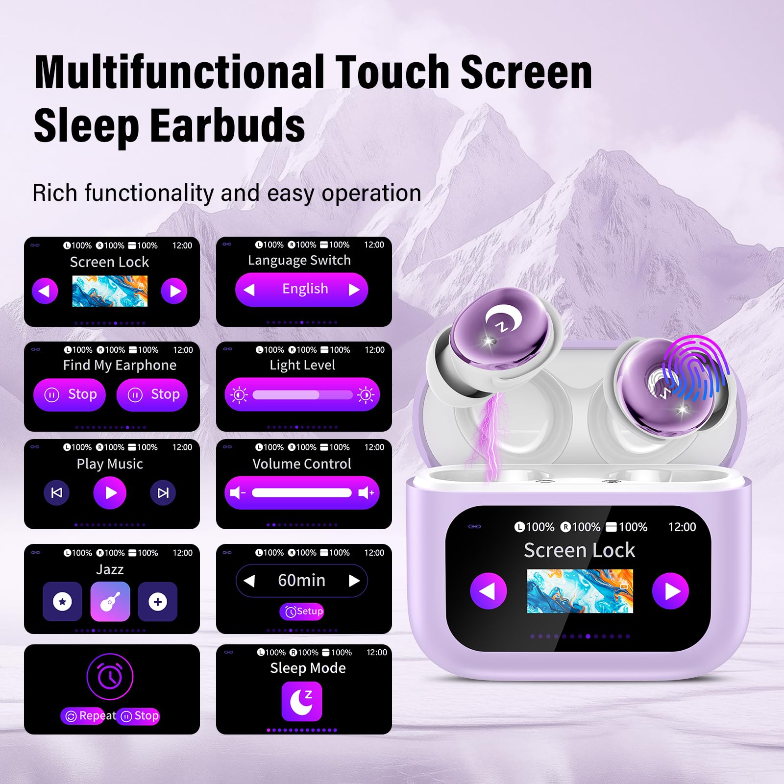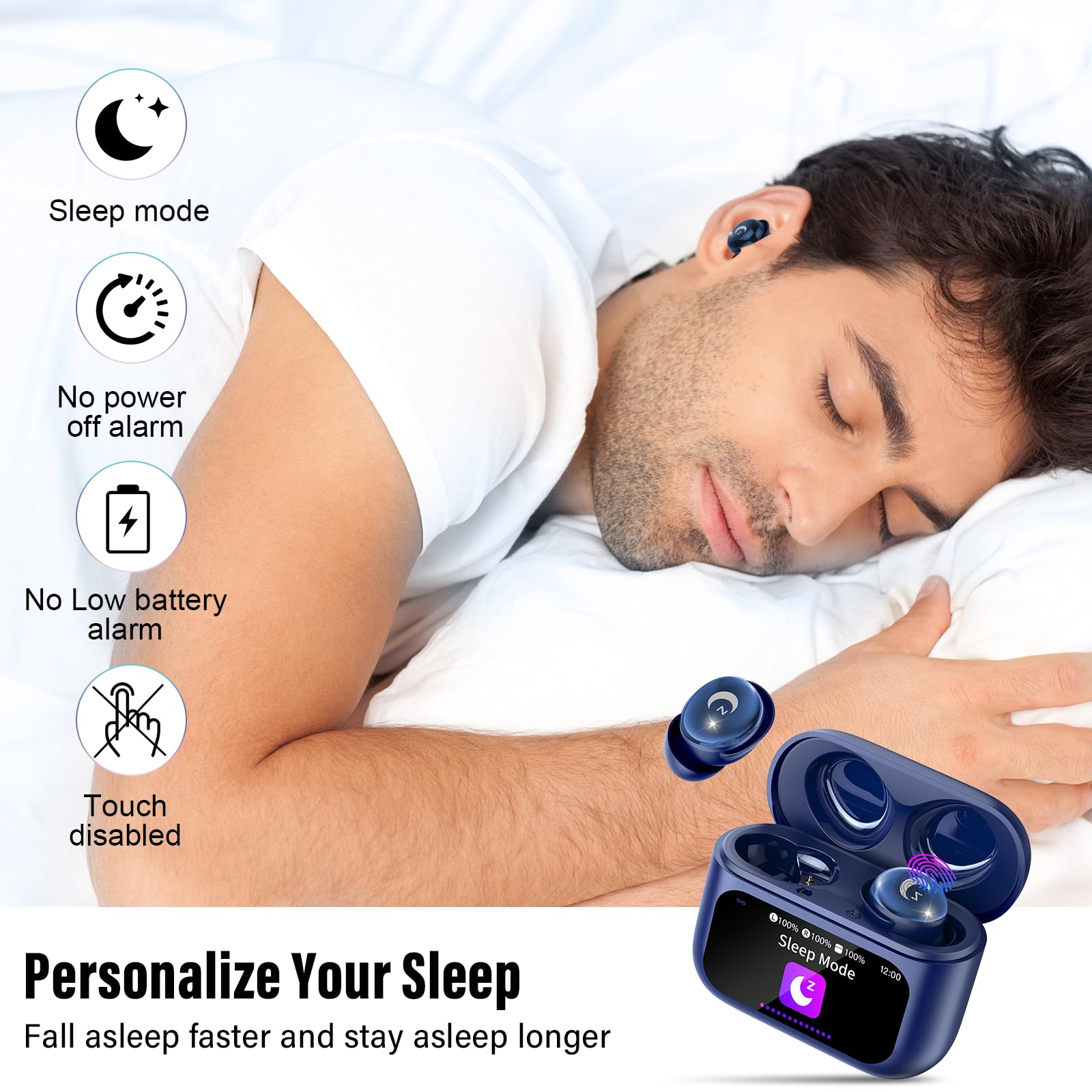 Sleep Earbuds (Bluetooth 5.4-Smart Touch Screen-48H Playtime-IPX7 Waterproof).