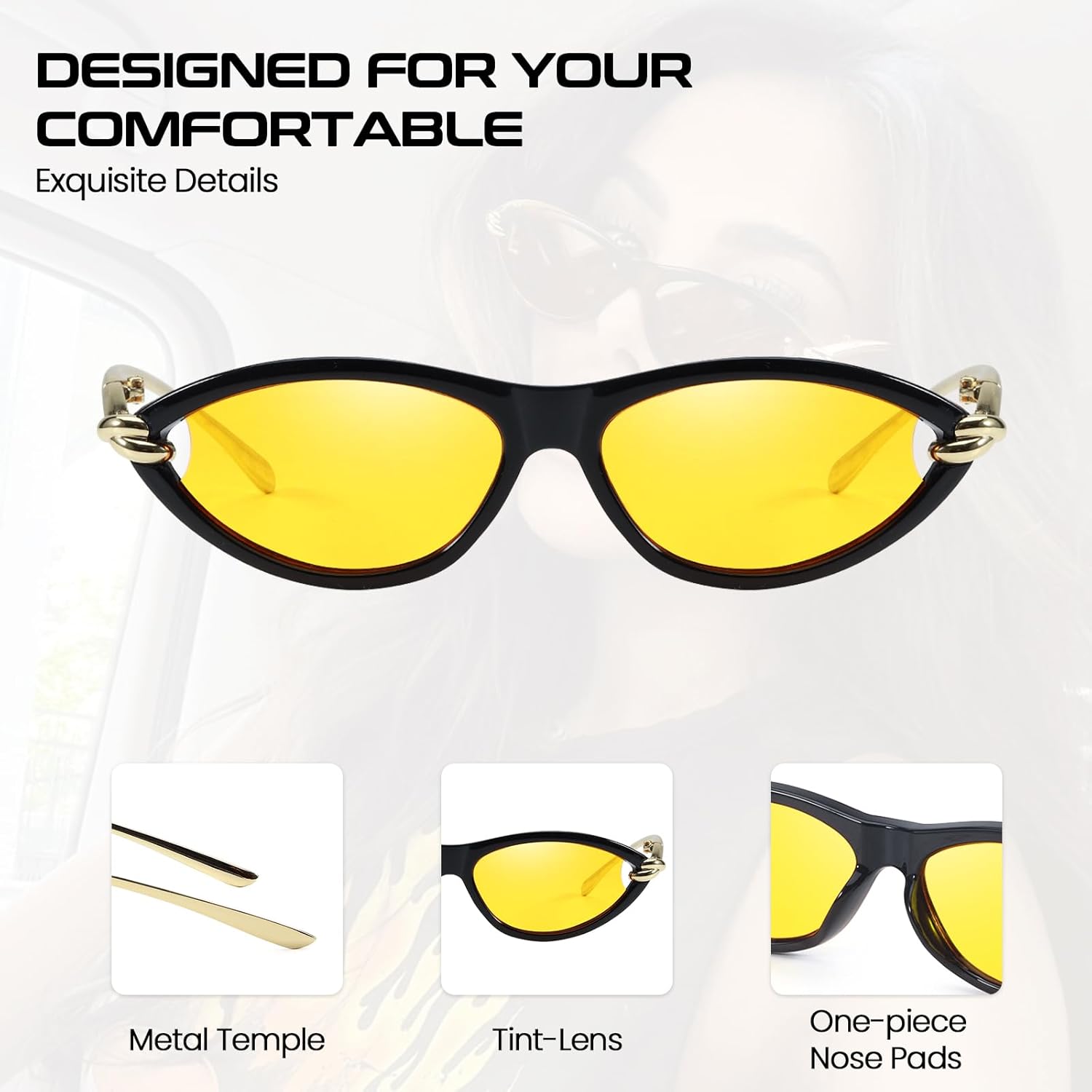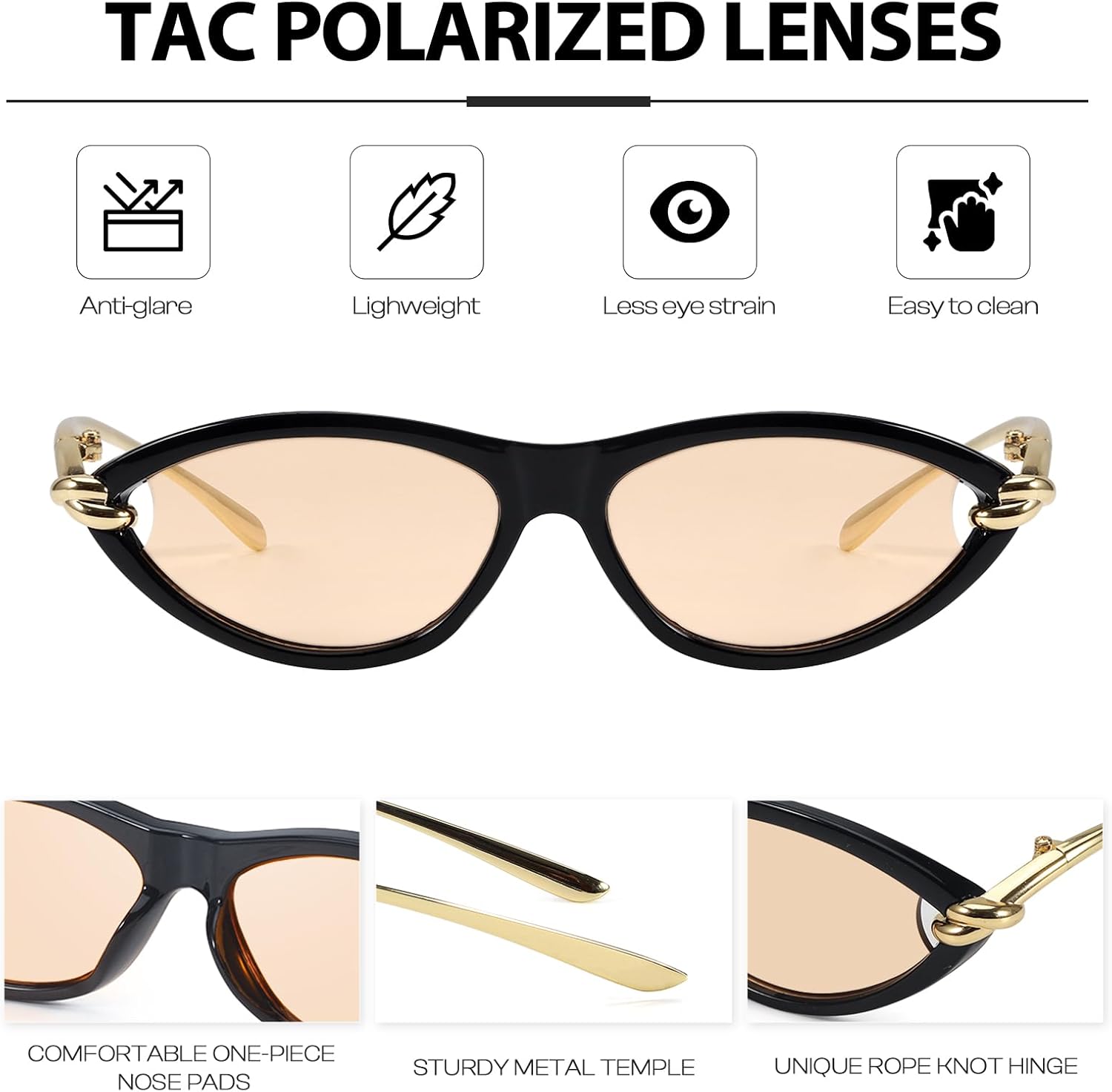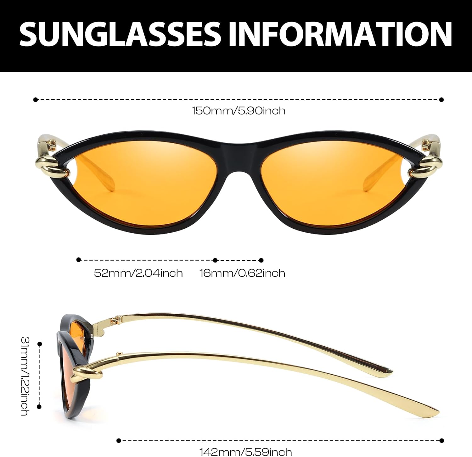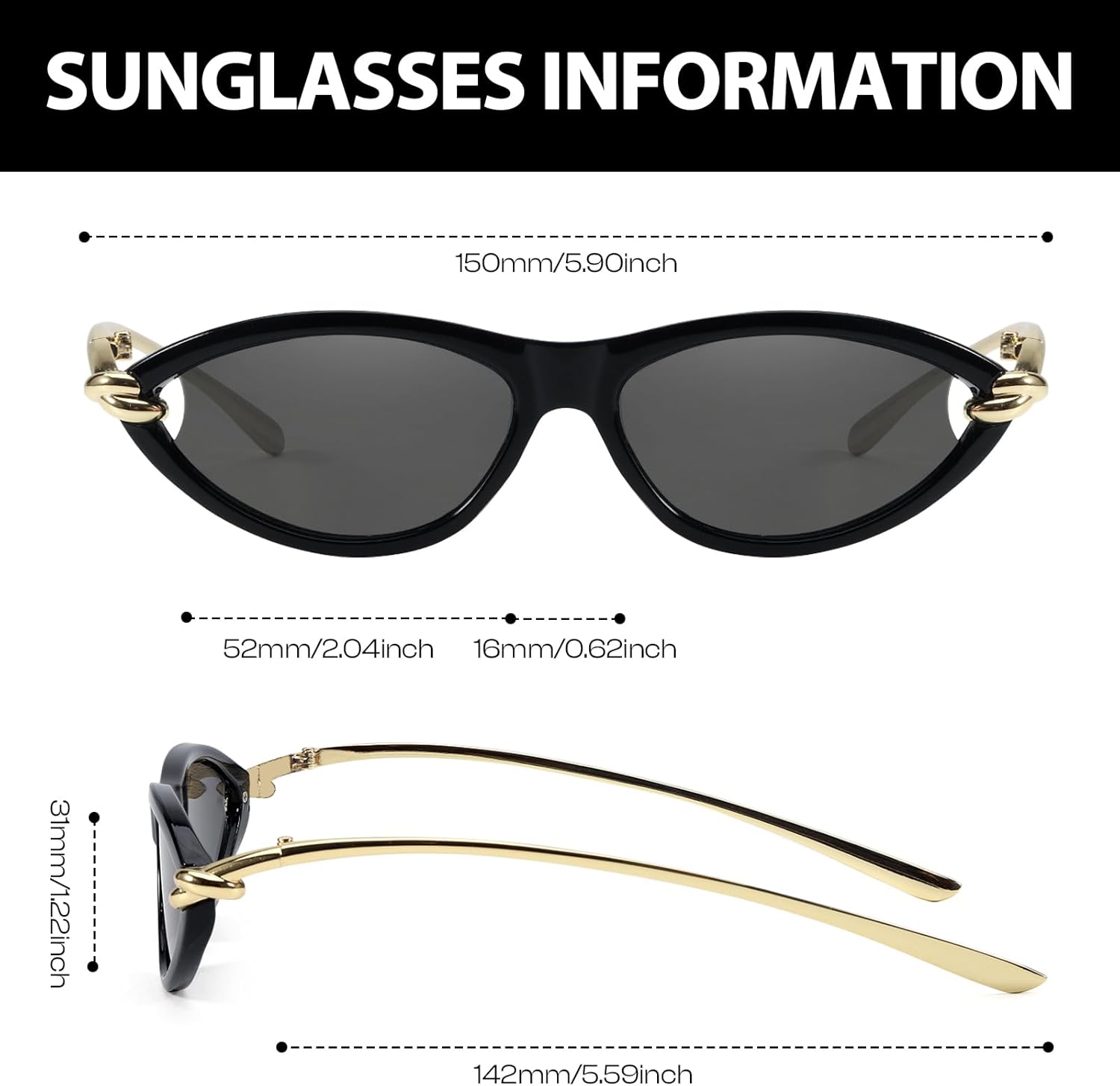- Gold Accents for Elegance: The gold accents on the frames give these sunglasses a luxurious and elegant appearance. The combination of the classic cat eye shape and the shimmering gold details makes them a standout piece for any outfit.